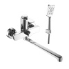 - Аксессуары в комплекте (душевой шланг 1,5 м, настенное крепление, 3-функциональная лейка 80x265 мм)