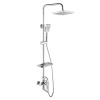 - Аксессуары в комплекте (душевой шланг 1,5 м, 3-функциональная лейка 80х265 мм с функцией легкой очистки, регулируемое по высоте крепление для лейки, регулируемая по высоте полочка для душевых принадлежностей)