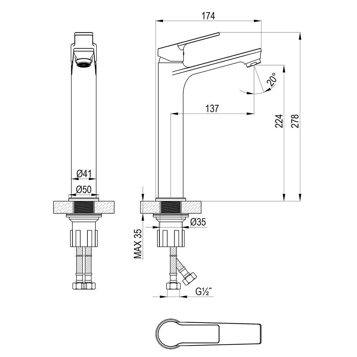 - Гибкая подводка ½” 35 см