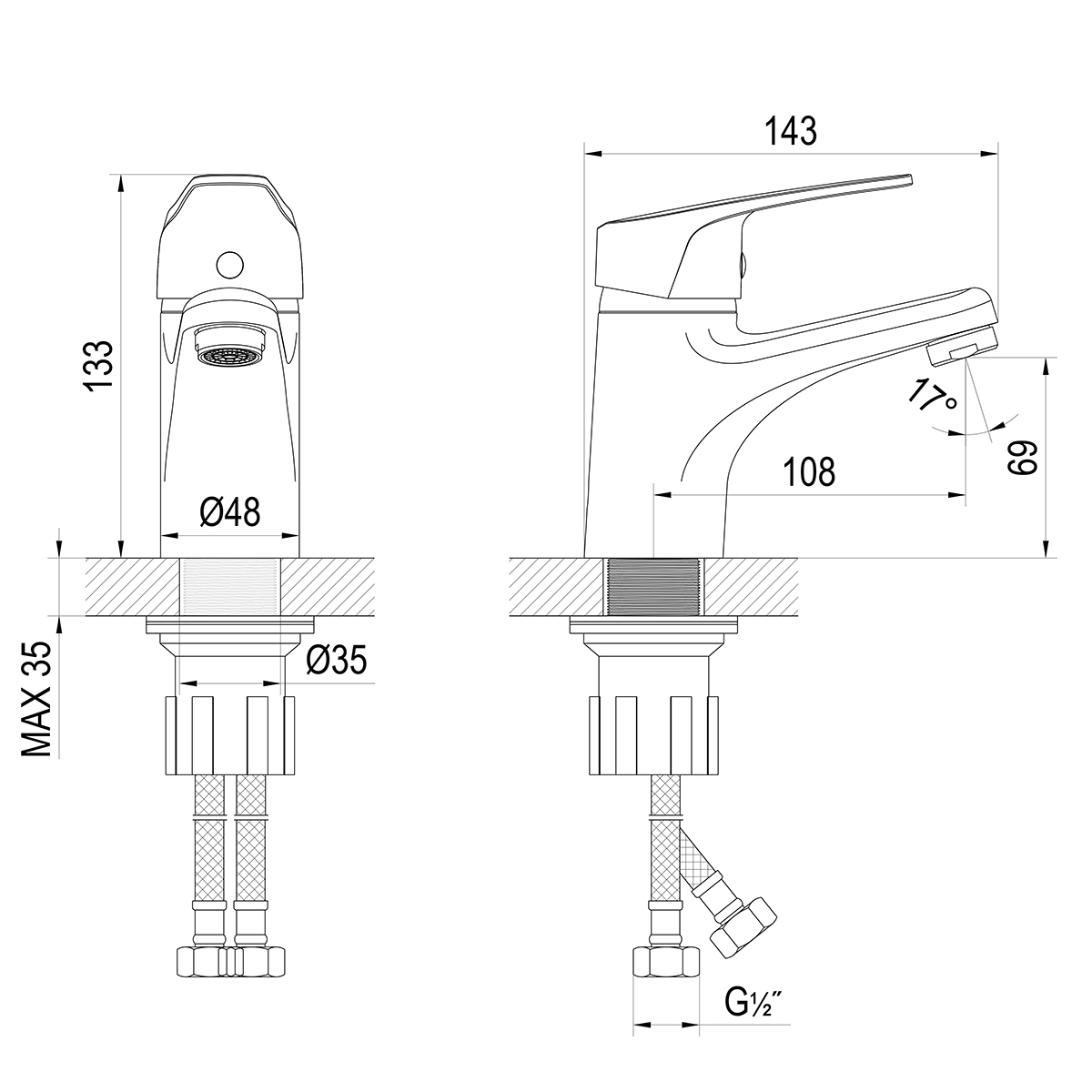 - Гибкая подводка ½” 35 см