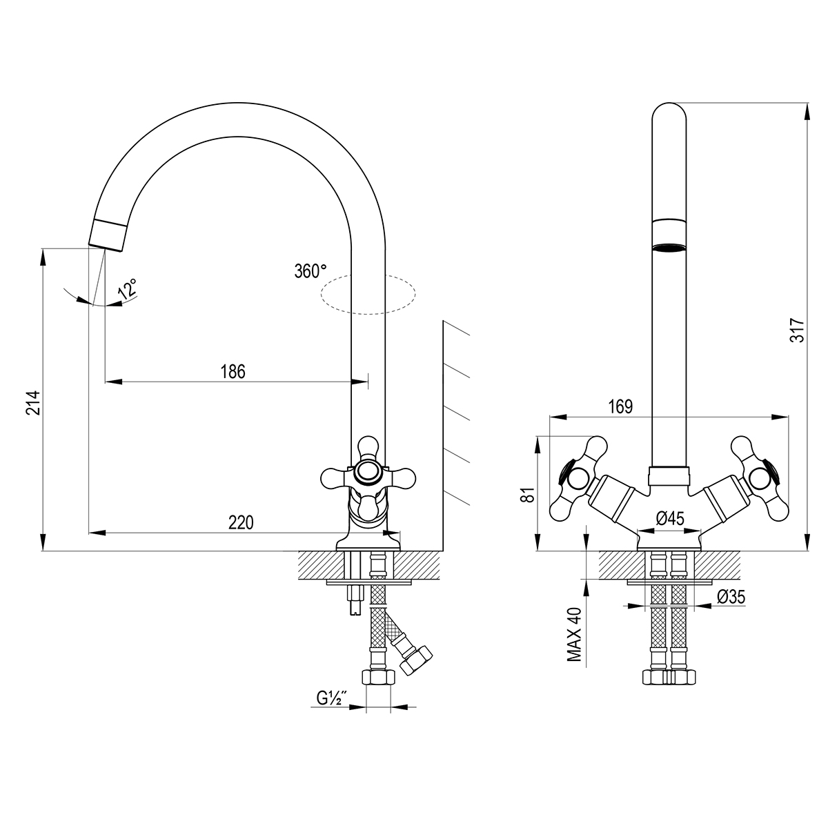 - Кран-буксы с керамическими пластинами (угол поворота - 90°)