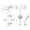 - Аксессуары в комплекте (5-функциональная лейка Ø85×195 мм, душевой шланг 1,5 м)