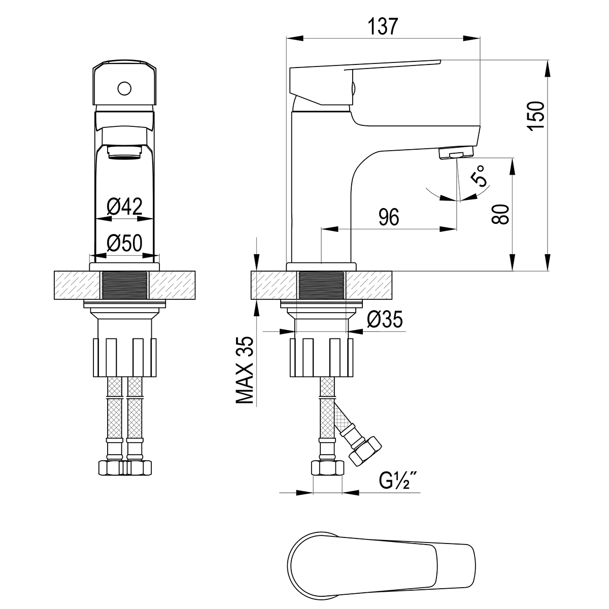 - Гибкая подводка ½” 35 см